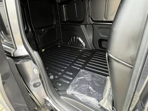 Divisória de carga em chapa com abertura que permite o transporte de objetos longos.