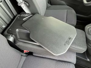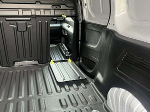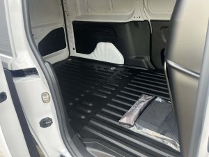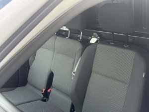 Divisória de carga em chapa com abertura que permite o transporte de objetos longos.